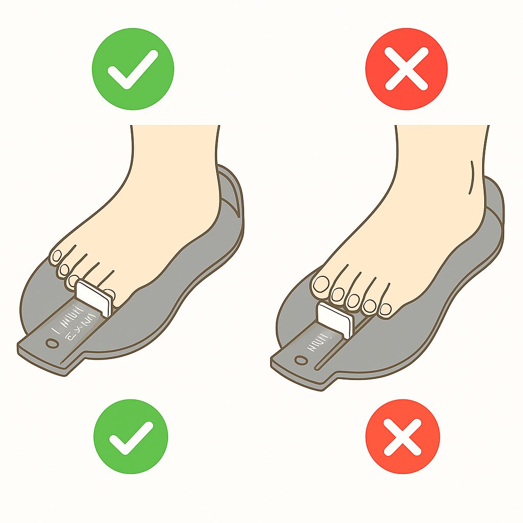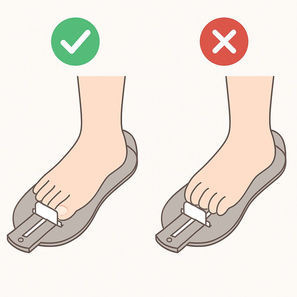 - つま先をまっすぐ伸ばし、スライダーをやさしく指先に合わせる